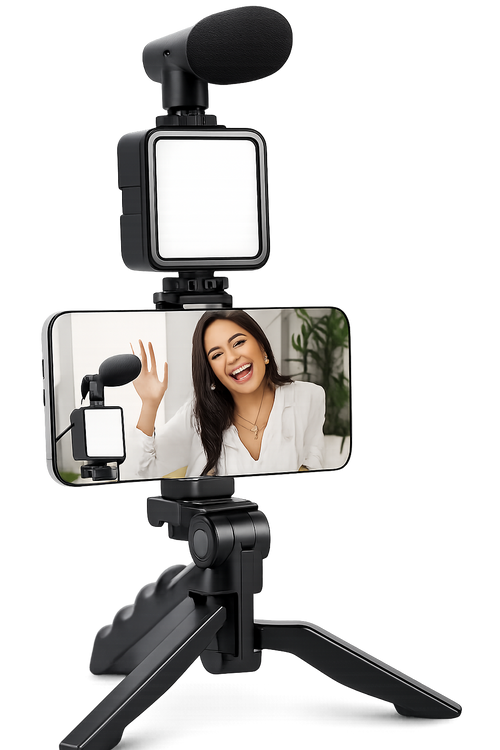 Consigue videos más estables, con mejor sonido y buena iluminación en segundos. Ideal para grabar, hacer videollamadas o crear contenido fácilmente desde casa o donde quieras.